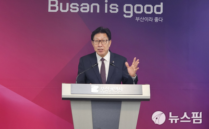 [부산=뉴스핌] 남동현 기자 = 박형준 부산시장이 1일 오전 11시 20분 시청 9층 프레스센터에서 브리핑을 통해 '차세대 부산형 급행철도, BuTX 사업'에 대해 설명하고 있다. 2025.10.01 |