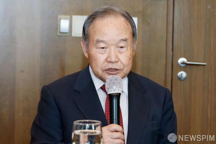 [서울=뉴스핌] 류기찬 기자 = 박재윤 전 통상산업부 장관이 1일 오후 서울 중구 한국프레스센터에서 열린 '산업통상부 역대장관 초청 간담회'에서 모두 발언을 하고 있다. 2025.10.01 ryuchan0925@newspim.com