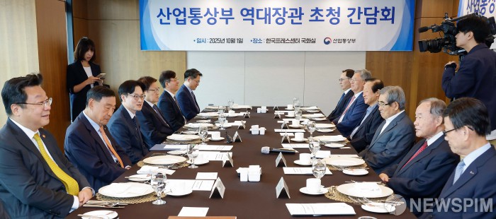 [서울=뉴스핌] 류기찬 기자 = 김정관 산업통상부 장관이 1일 오후 서울 중구 한국프레스센터에서 열린 '산업통상부 역대장관 초청 간담회'에서 모두 발언을 하고 있다. 2025.10.01 ryuchan0925@newspim.com