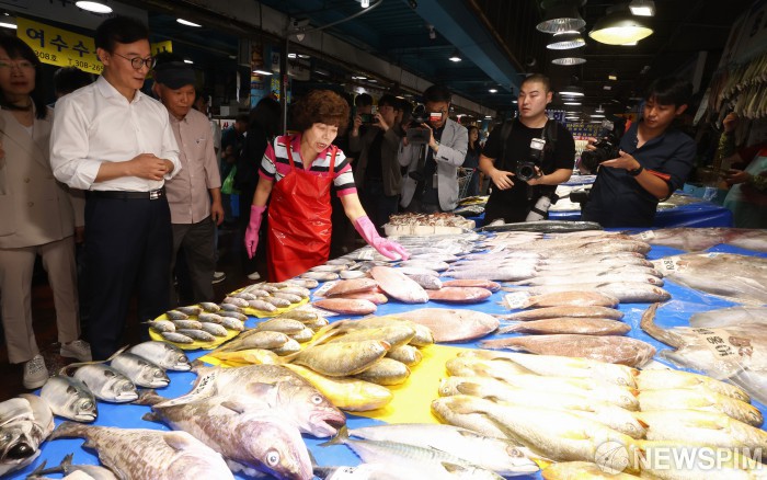 마포농수산물시장 현장 방문한 전재수 해수부 장관
