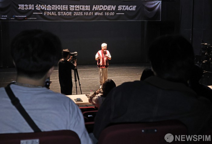 [서울=뉴스핌] 최지환 기자 = 1일 오후 서울 동대문구 콘텐츠문화광장 스테이지66에서 열린 제3회 싱어송라이터 경연대회 '히든스테이지(HIDDEN STAGE)' 결선에서 김형석 심사위원장이 심사 총평을 하고 있다. '히든스테이지'는 종합뉴스통신사 뉴스핌과 감엔터테인먼트가 주최·주관하고, 문화체육관광부·서울특별시·한국콘텐츠진흥원·한국음악저작권협회가 후원한다. 2025.10.01 choipix16@newspim.com