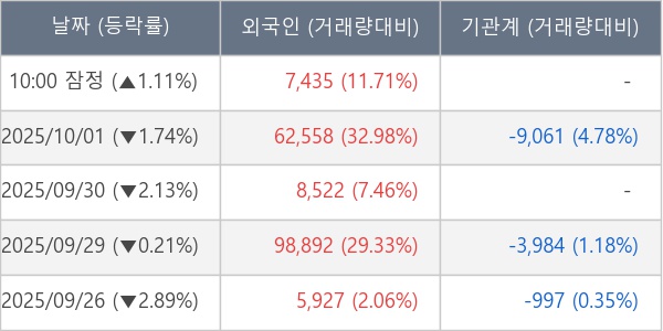 [표] 외국인ㆍ기관 순매매량 (단위 주)