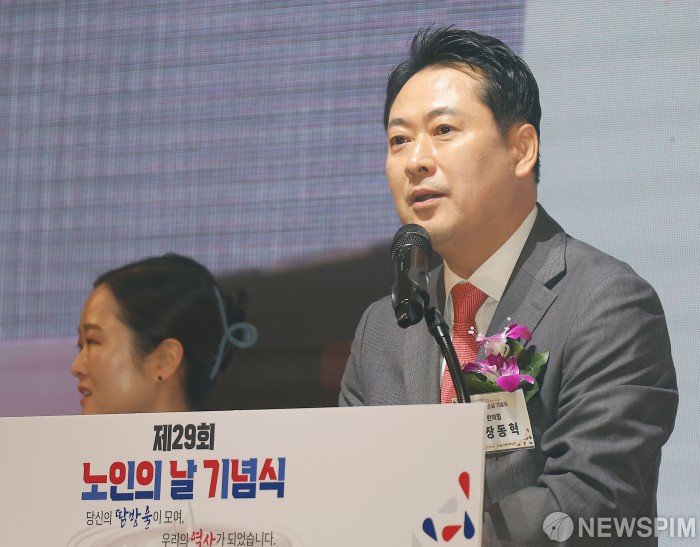 [서울=뉴스핌] 류기찬 기자 = 장동혁 국민의힘 당대표가 2일 서울 중구 소공로 롯데호텔 크리스탈볼룸에서 열린 ‘제29회 노인의 날 기념식’에서 축사를 하고 있다. 2025.10.02 ryuchan0925@newspim.com
