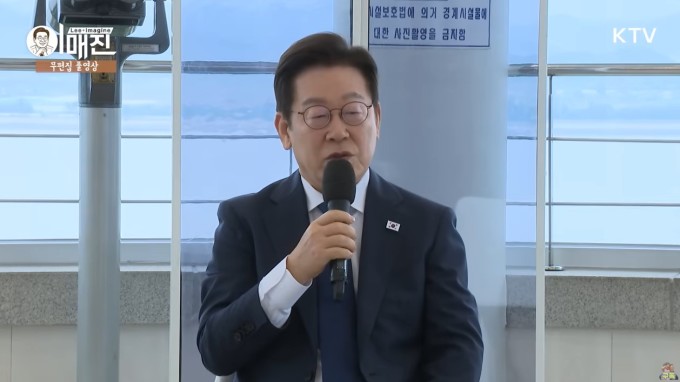 이재명 대통령이 추석 연휴 첫날인 3일 오전 인천 강화평화전망대에서 실향민들과 그 가족들을 만나 위로했다. [사진=KTV]