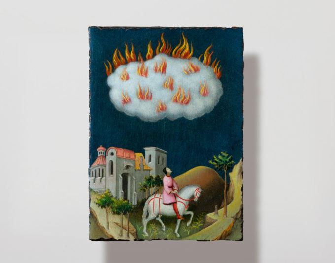영상작업과 네온작업, 조각 작품과 함께 작가는 루이비통과 협업한 회화 연작 '과거에 대한 고찰(Studies into the Past)'를 내걸었다. 르네상스 시대 이탈리아 등지서 제작된 다양한 회화 이미지를 차용해, 그 위에 작가 자신이 직접 그림을 그려넣은 페인팅 시리즈로 모두 신작이다.