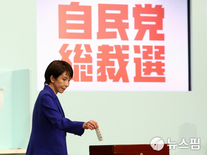 4일 치러진 일본 자민당 총재 선거에서 투표하는 다카이치 사나에 전 경제안보상 [사진=로이터 뉴스핌]