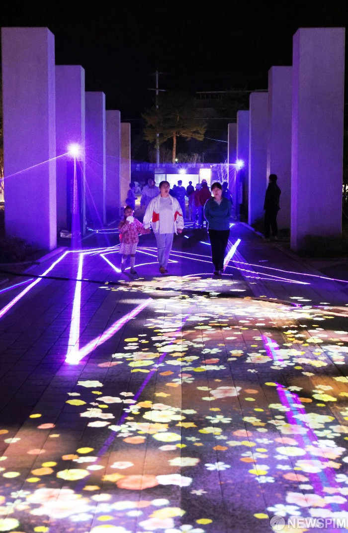 [서울=뉴스핌] 양윤모 기자 = 추석연휴를 맞아 4일 오후 평창읍 노람들 에코랜드에서 '2025평창 백일홍축제'를 기념하는 '평창 에코라이트'가 화려하게 펼쳐지고 있다. 이번 행사는 ‘올림픽 도시를 지나 미래 에코 도시로의 도약, 평창’이라는 슬로건 아래 ‘보름달 아래서 즐기는 한가위 빛 판타지’를 주제로 추석 황금연휴 기간에 맞춰 12일까지 평창백일홍축제를 찾는 방문객들에게 평창의 화려한 가을밤을 선사할 예정이다. [사진= 평창군청] 2025.10.05 yym58@newspim.com