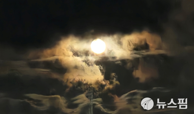[광주=뉴스핌] 박진형 기자 = 8일 광주 남구 백운광장 푸른길 브릿지에서 바라본 밤하늘에 둥근달이 떠 있다. 한가위 보름달은 지난 6일 오후 5시 33분에 떴지만 비가 내린 흐린 날씨 탓에 보기 어려웠다. 다음 날인 7일 낮 12시 48분에는 달이 태양의 정반대에 위치하며 완전한 보름달이 됐으나 낮 시간이라 관측은 불가능했다. 2025.10.08 bless4ya@newspim.com