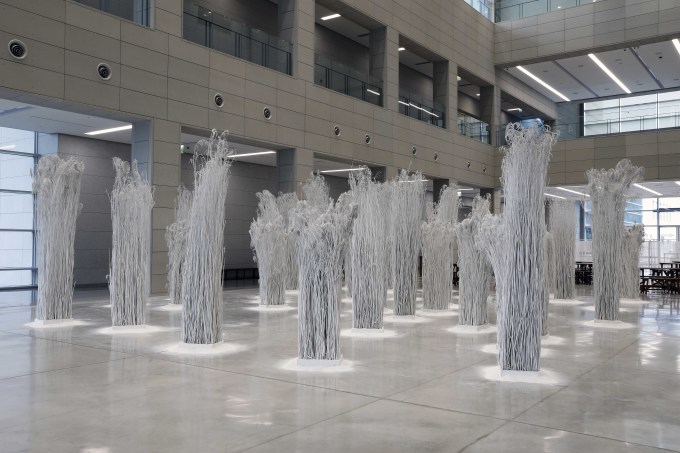 미술관 로비인 어미홀에는 이강소의 첫 개인전 출품작 '소멸'(1973)을 중심으로 갈대와 브론즈 조각이 어우러진 공간으로 변모했다. 창으로 스며드는 자연광과 흰 갈대 설치가 어우러지며 관객은 낙동강변과 현재의 미술관을 동시에 경험하고 곡수의 흐름 속에 자리한 작가의 예술을 체감할 수 있다.
