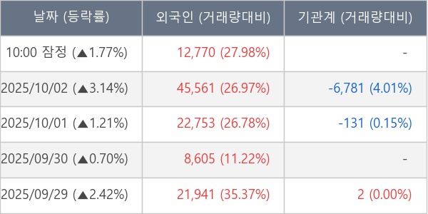 [서울=뉴스핌] 로보뉴스 = 10일 10시 15분 현재 아바코(083930)는 전일 대비 1.77% (현재가 16,720원) 상승했고, 외국인이 최근 24일 연속 순매수(누적 53.46만 주, 잠정) 행진을 하고 있다.