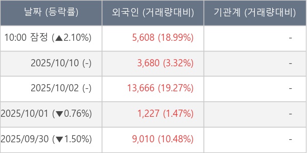 [표] 외국인ㆍ기관 순매매량 (단위 주)