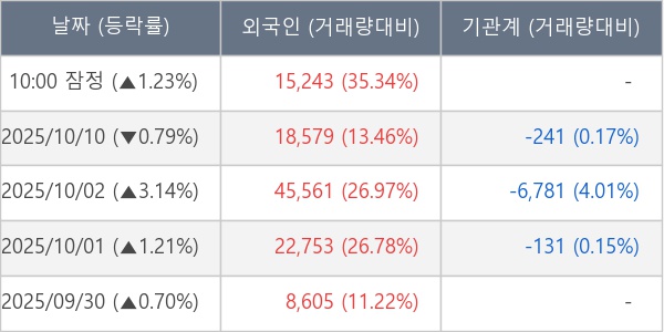 [표] 외국인ㆍ기관 순매매량 (단위 주)