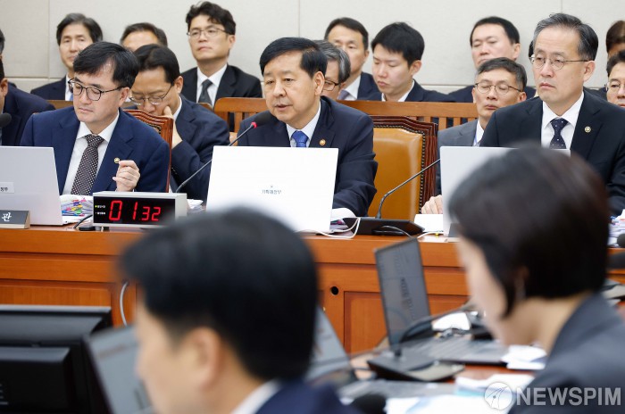 [서울=뉴스핌] 류기찬 기자 = 구윤철 부총리 겸 기획재정부 장관이 13일 오후 서울 여의도 국회에서 열린 '2025년 기획재정위원회 국정감사'에서 질의에 답하고 있다. 2025.10.13 ryuchan0925@newspim.com |