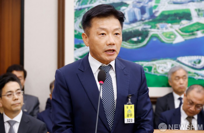 [서울=뉴스핌] 류기찬 기자 = 송치영 포스코이엔씨 사장이 13일 오후 서울 여의도 국회에서 열린 '2025년 국토교통부 등에 대한 국정감사'에서 질의에 답하고 있다. 2025.10.13 ryuchan0925@newspim.com