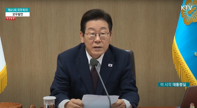 [서울=뉴스핌] 박성준 기자 = 이재명 대통령이 14일 오전 용산 대통령실에서 열린 국무회의에서 발언하고 있다. [사진=KTV 캡쳐] 2025.10.14 parksj@newspim.com |