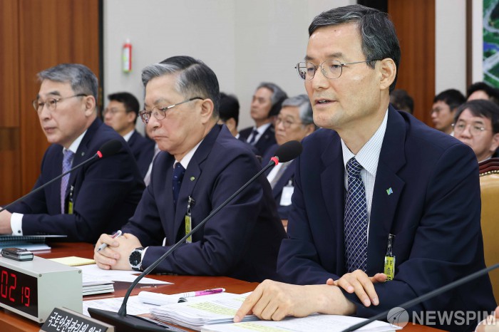 [서울=뉴스핌] 윤창빈 기자 = 김일환 국토안전관리원장이 14일 오전 서울 여의도 국회에서 열린 국토교통위원회의 한국토지주택공사 등에 대한 국정감사에서 의원 질문에 답변하고 있다. 2025.10.14 pangbin@newspim.com