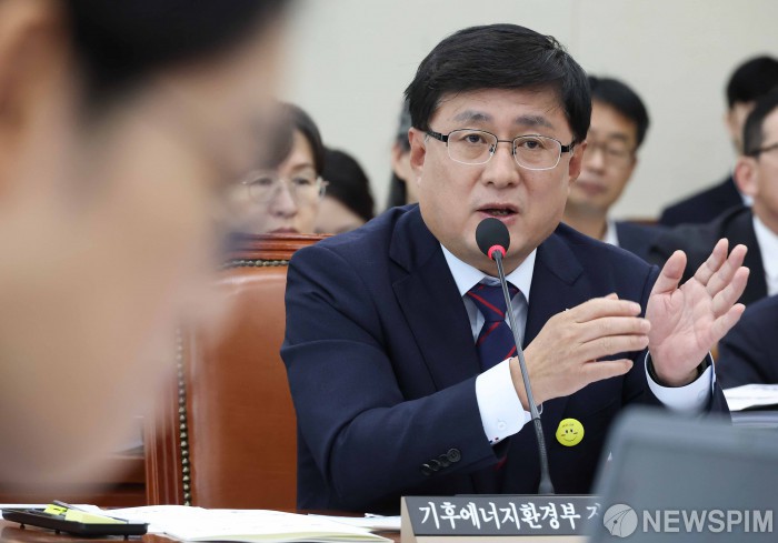 [서울=뉴스핌] 윤창빈 기자 = 김성환 기후에너지환경부 장관이 14일 오전 서울 여의도 국회에서 열린 기후에너지환경위원회의 기후에너지환경부 등에 대한 국정감사에서 의원 질문에 답변하고 있다. 2025.10.14 pangbin@newspim.com
