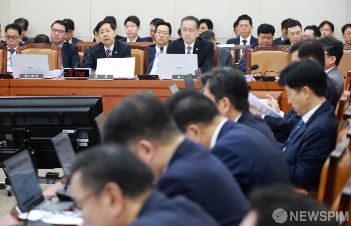 [서울=뉴스핌] 김학선 기자 = 구윤철 부총리 겸 기획재정부 장관이 14일 서울 여의도 국회에서 열린 기획재정위원회 국정감사에서 의원들의 질의에 답변하고 있다. 2025.10.14 yooksa@newspim.com