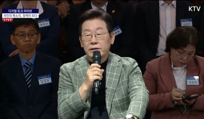 이재명 대통령이 14일 오후 동대문구 콘텐츠문화광장에서 열린 디지털 토크 라이브 '국민의 목소리, 정책이 되다'에서 발언하고 있다. [사진=KTV 캡쳐] |