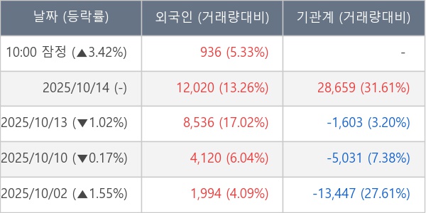 [표] 외국인ㆍ기관 순매매량 (단위 주)