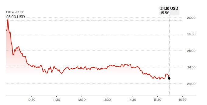 합병 발표에 7% 가까이 급락한 레이오니어 주가 [자료=블룸버그] |