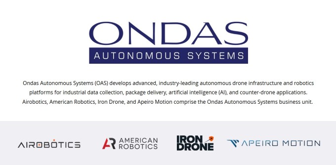 ▷ 온다스 자율 시스템(Ondas Autonomous Systems, OAS)은 자회사 아메리칸 로보틱스, 에어로보틱스, 아페이로 모션을 통해 상업용 드론 및 지상 로봇 솔루션을 개발·판매한다. 대표 기술인 옵티머스 시스템은 미국 연방항공청(FAA)으로부터 공식 인증을 받은 최초의 완전 자율 상업용 드론으로, 이착륙·충전·데이터 전송·보관까지 모든 과정을 무인으로 수행한다. 보안 감시, 에너지 설비 점검, 데이터 수집 등 고위험 환경에서 사람의 개입 없이 임무를 완수할 수 있다.