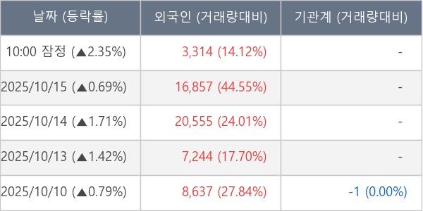 [표] 외국인ㆍ기관 순매매량 (단위 주)