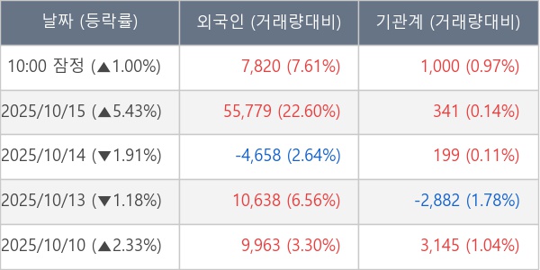 [표] 외국인ㆍ기관 순매매량 (단위 주)