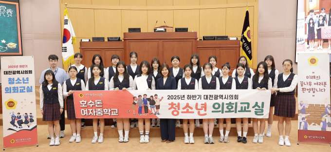 [대전=뉴스핌] 오종원 기자 = 대전시의회는 16일 호수돈여자중학교 학생들이 방문해 의회 운영 과정을 직접 체험하는 '청소년 의회교실'을 개최했다고 밝혔다.