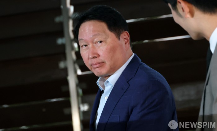 [서울=뉴스핌] 최지환 기자 = 최태원 SK그룹 회장이 16일 오후 미국 출국을 위해 서울 강서구 서울김포비즈니스항공센터로 들어가고 있다. 최태원 SK그룹 회장을 비롯해 이재용 삼성전자 회장, 정의선 현대차그룹 회장, 구광모 LG그룹 회장 등 주요 기업 총수들이 손정의 소프트뱅크 회장의 초청으로 미국 마러라고리조트에서 개최되는 AI 인프라 구축 프로젝트 '스타게이트' 관련 투자 행사에 참석할 예정이다. 2025.10.16 choipix16@newspim.com