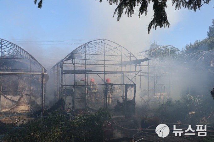 이 화재로 다행히 인명 피해는 없었지만, 비닐하우스 내부 농자재와 기자재 등이 불에 타 재산 피해 규모는 현재 조사 중이다.
