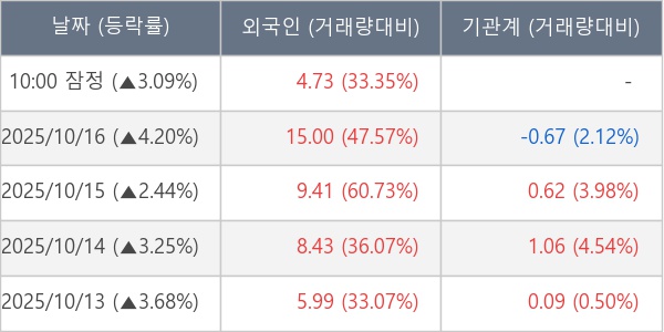 [표] 외국인ㆍ기관 순매매량 (단위 만주)