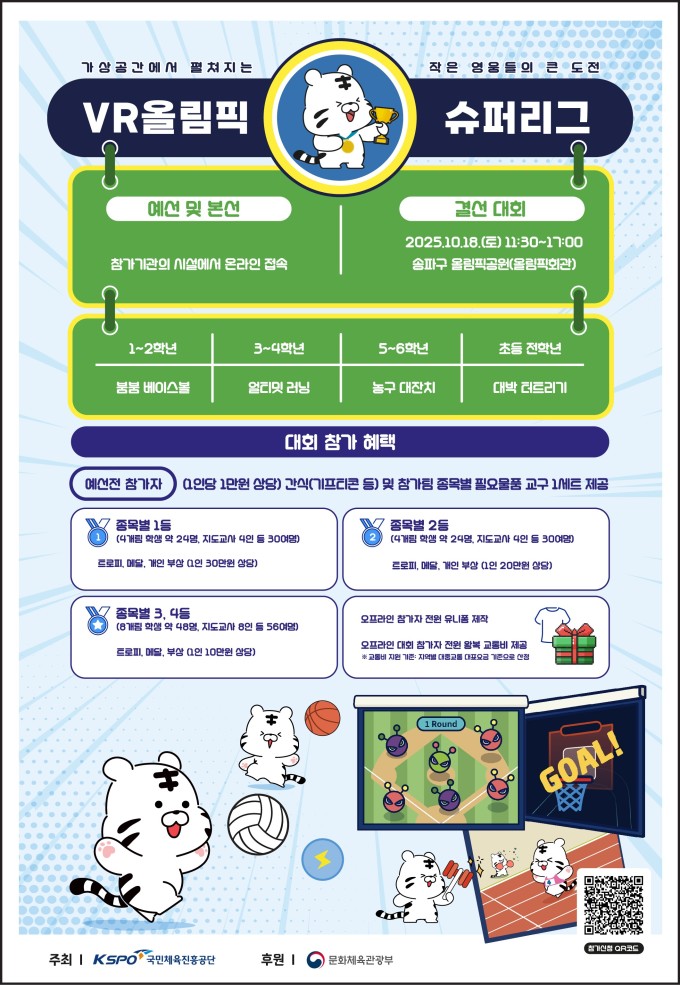 [서울=뉴스핌] 남정훈 기자 = 국민체육진흥공단이 초등학생을 대상으로 한 가상현실(VR) 스포츠 축제 '2025 VR 올림픽 슈퍼리그'의 결선 경기를 개최한다.