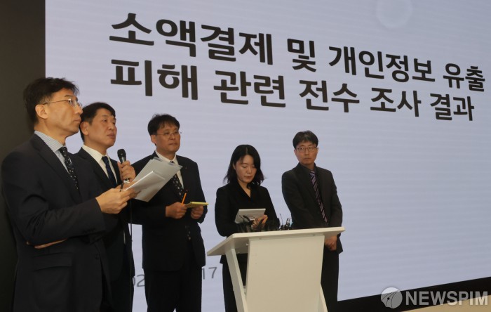 [서울=뉴스핌] 양윤모 기자 = 최근 KT 불법 기지국 20여개가 추가로 발견된 가운데, KT 소액결제 피해 관련 기자 브리핑이 17일 서울 KT 광화문 West 사옥에서 서창석 KT 네트워크 부문 부사장과 임원진이 참석해 추가적으로 확인된 사항을 발표하고 있다. 2025.10.17 yym58@newspim.com
