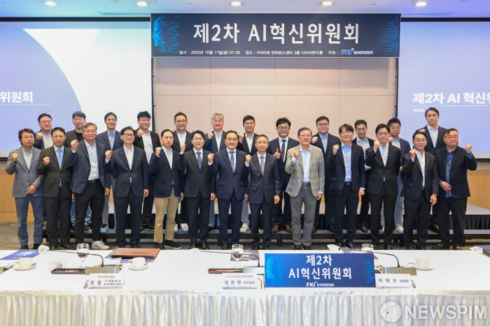 [서울=뉴스핌] 허태수 한경협 AI 혁신위원회 위원장, 임문영 국가인공지능전략위원회 부위원장, 정철 한경협 연구총괄대표 등 참석자들이 17일 서울 여의도 FKI타워 컨퍼런스센터에서 열린 한경협 ‘AI 혁신위원회’ 2차 회의에서 기념촬영을 하고 있다. 첫번째 줄 왼쪽부터 박근한 현대자동차 머신런닝랩장, 윤지웅 과학기술정책연구원장, 유창동 카이스트 교수, 이경무 서울대 석좌교수, 조의제 LS CIO, 임우형 LG AI연구원장, 정철 한국경제인협회 연구총괄대표 겸 한국경제연구원장, 임문영 국가인공지능전략위원회 부위원장, 허태수 AI 혁신위원회 위원장, 이치훈 CJ그룹 AI실장, 유경상 SK텔레콤 CSO, 김상욱 삼양데이타시스템 대표, 정우진 KT 전략ㆍ사업컨설팅부문장. [사진=한경협] 2025.10.17 photo@newspim.com