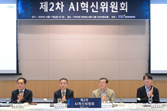 [서울=뉴스핌] 한경협은 17일 서울 여의도 FKI타워 컨퍼런스센터에서 임문영 대통령 직속 임문영 국가인공지능전략위원회 부위원장을 초청해 한경협 ‘AI 혁신위원회’ 2차 회의를 개최했다. 사진 왼쪽부터 정철 한국경제인협회 연구총괄대표 겸 한국경제연구원장, 임문영 국가인공지능전략위원회 부위원장 부위원장, 허태수 AI 혁신위원회 위원장, 이치훈 CJ 그룹 AI실장. [사진=한경협] 2025.10.17 photo@newspim.com