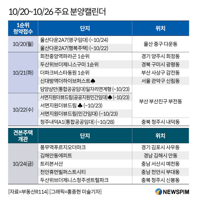 [서울=뉴스핌] 송현도 기자 = 18일 부동산R114에 따르면 10월 넷째 주에는 전국 10개 단지 총 4500가구(일반분양 2497가구)가 공급된다.