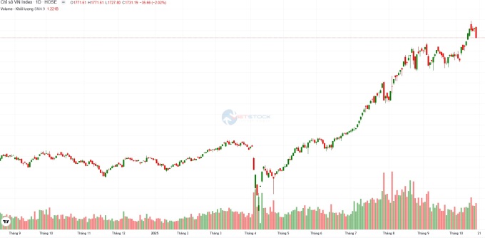 [그래픽=비엣 스톡 캡처] 베트남 증시 호찌민 VN지수 17일 거래 추이