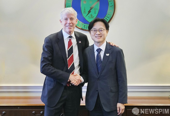 [서울=뉴스핌] 김정관 산업통상부 장관이 지난 16일(현지시간) 미국 워싱턴 D.C. 에너지부 회의실에서 크리스 라이트(Chris Wright) 에너지부 장관과 면담을 갖고, 한미 양국 간 에너지 협력 강화방안을 논의했다. [사진=산업통상자원부] 2025.10.19 photo@newspim.com
