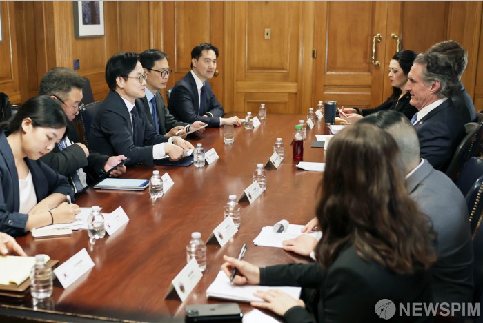 김정관 산업통상부 장관이 지난 17일(현지시간) 미국 워싱턴 D.C. 내무부에서 더그 버검(Doug Burgum) 미국 백악관 국가에너지위원회 위원장 겸 내무부 장관과 면담을 갖고, LNG 등 한-미 양국 간 에너지 협력 방안을 논의했다.