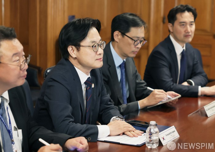 김정관 산업통상부 장관이 지난 17일(현지시간) 미국 워싱턴 D.C. 내무부에서 더그 버검(Doug Burgum) 미국 백악관 국가에너지위원회 위원장 겸 내무부 장관과 면담을 갖고, LNG 등 한-미 양국 간 에너지 협력 방안을 논의했다.