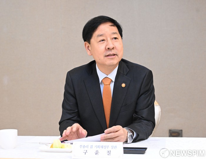 [서울=뉴스핌]구윤철 부총리 겸 기획재정부 장관이 20일 서울 종로구 정부서울청사에서 국정운영을 위한 부총리 간 협조 및 협업방안을 논의하고자 간담회를 개최, 모두 발언을 하고 있다.[사진=기획재정부] 2025.10.20 photo@newspim.com