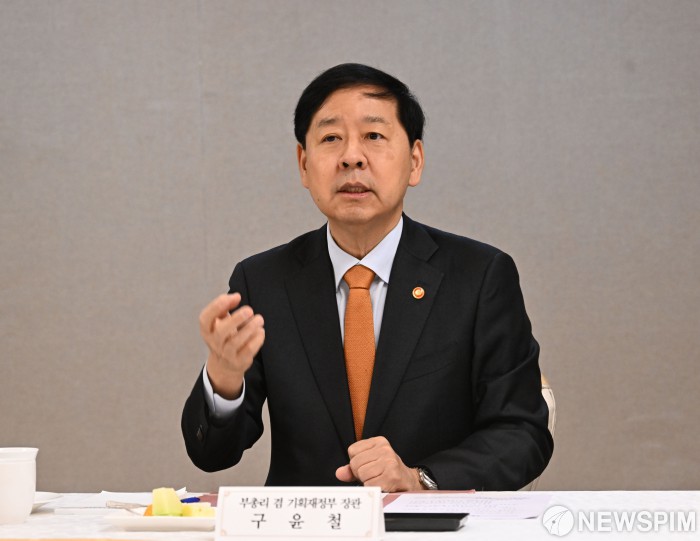 [서울=뉴스핌]구윤철 부총리 겸 기획재정부 장관이 20일 서울 종로구 정부서울청사에서 국정운영을 위한 부총리 간 협조 및 협업방안을 논의하고자 간담회를 개최, 모두 발언을 하고 있다.[사진=기획재정부] 2025.10.20 photo@newspim.com