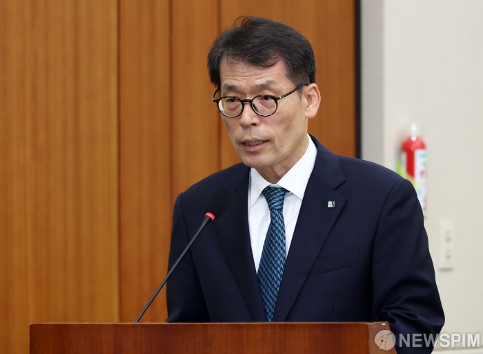 [서울=뉴스핌] 최지환 기자 = 김성태 중소기업은행장이 20일 오전 서울 여의도 국회 정무위원회에서 열린 금융위원회 등에 대한 국정감사에서 기관보고를 하고 있다. 2025.10.20 choipix16@newspim.com