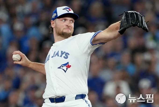 [토론토=뉴스핌] 박상욱 기자= 트레이 예세비지가 20일(한국시간) MLB 아메리칸리그 챔피언십시리즈 6차전 1회 투구하고 있다. 2025.10.20 psoq1337@newspim.com |