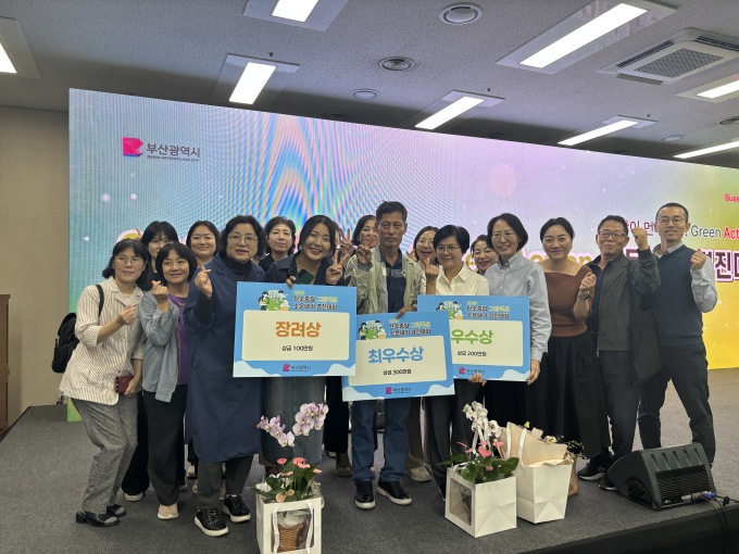 | 부산시 주관으로 열린 '2025년 탄소중립 그린액션 소문내기 경진대회'에서 영도구 관내 3개 팀이 상을 받고 기뻐하고 있다. [사진=영도구] 2025.10.20 |