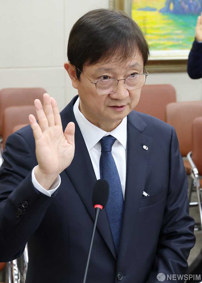 [서울=뉴스핌] 정일구 기자 = 이찬진 금융감독원장이 21일 오전 서울 여의도 국회 정무위원회에서 열린 금융감독원 등에 대한 국정감사에서 증인선서를 하고 있다. 2025.10.21 mironj19@newspim.com |