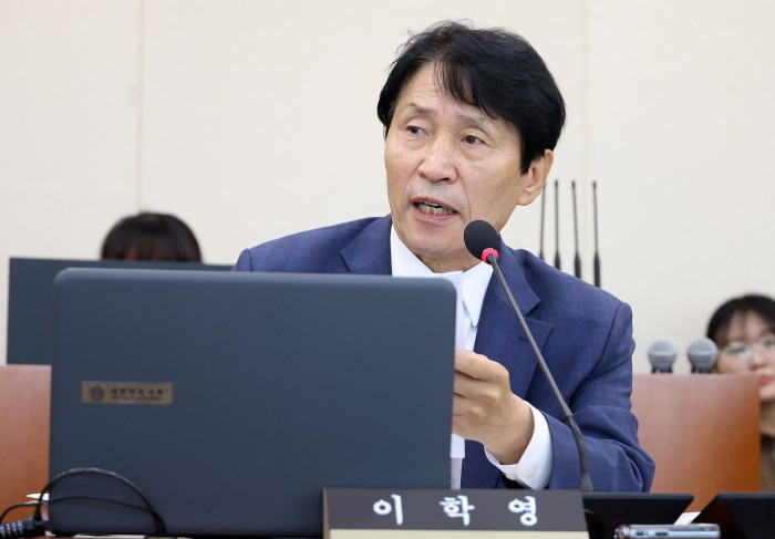 [서울=뉴스핌] 정일구 기자 = 이학영 더불어민주당 의원이 17일 서울 여의도 국회 기후에너지환경노동위원회에서 열린 기상청 등에 대한 국정감사에서 질의하고 있다. 2025.10.17 mironj19@newspim.com |