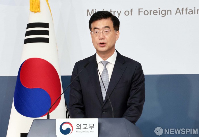 [서울=뉴스핌] 이길동 기자 = 이재웅 외교부 대변인이 21일 서울 종로구 외교부에서 열린 정례브리핑에서 현안 관련 질문에 답하고 있다. 2025.10.21 gdlee@newspim.com
