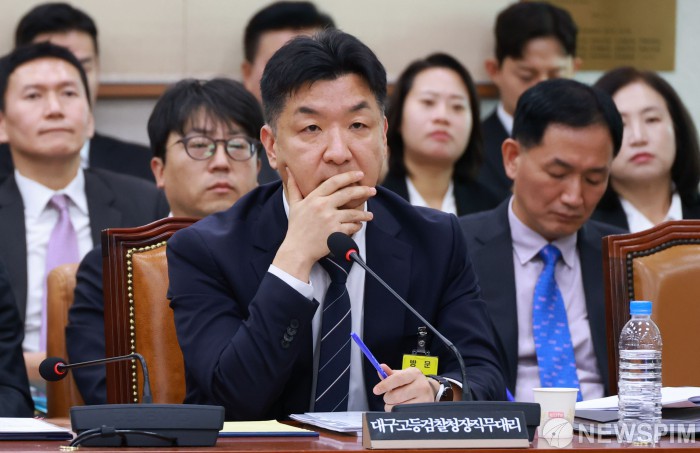 [서울=뉴스핌] 김학선 기자 = 박규형 대구고등검찰청장 직무대리가 21일 서울 여의도 국회 법제사법위원회에서 열린 국정감사에서 의원질의를 듣고 있다. 2025.10.21 yooksa@newspim.com
